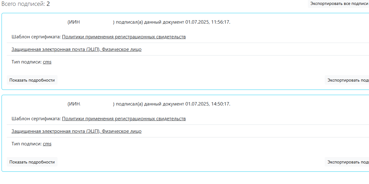 Удостоверьтесь в том, что сервис теперь отображает еще одну подпись под документом.