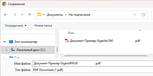 При нажатии кнопки автоматически откроется окно сохранения подписанного документа. После сохранения завершится переход на окно подписанного документа.